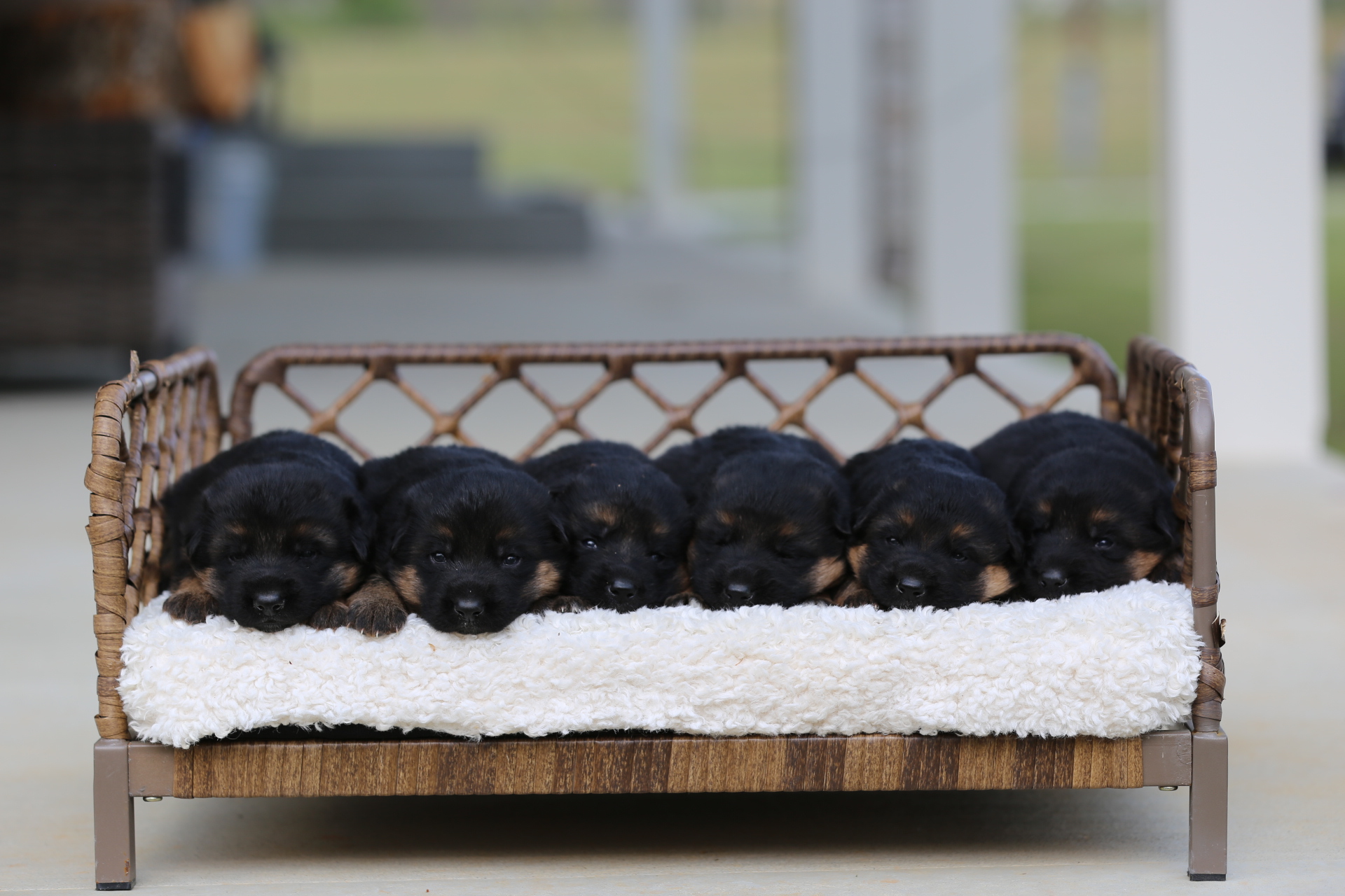 These puppies, known for their characteristic double coat, are a testament to the rich history of herding breeds. German Shepherds are one of the most flexible dog breeds. They are great as family pets, working dogs, or show dogs.